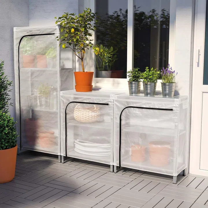 A great outdoor option, the Hyllis shelving units come with covers to protect their contents from the elements. PHOTO: IKEA