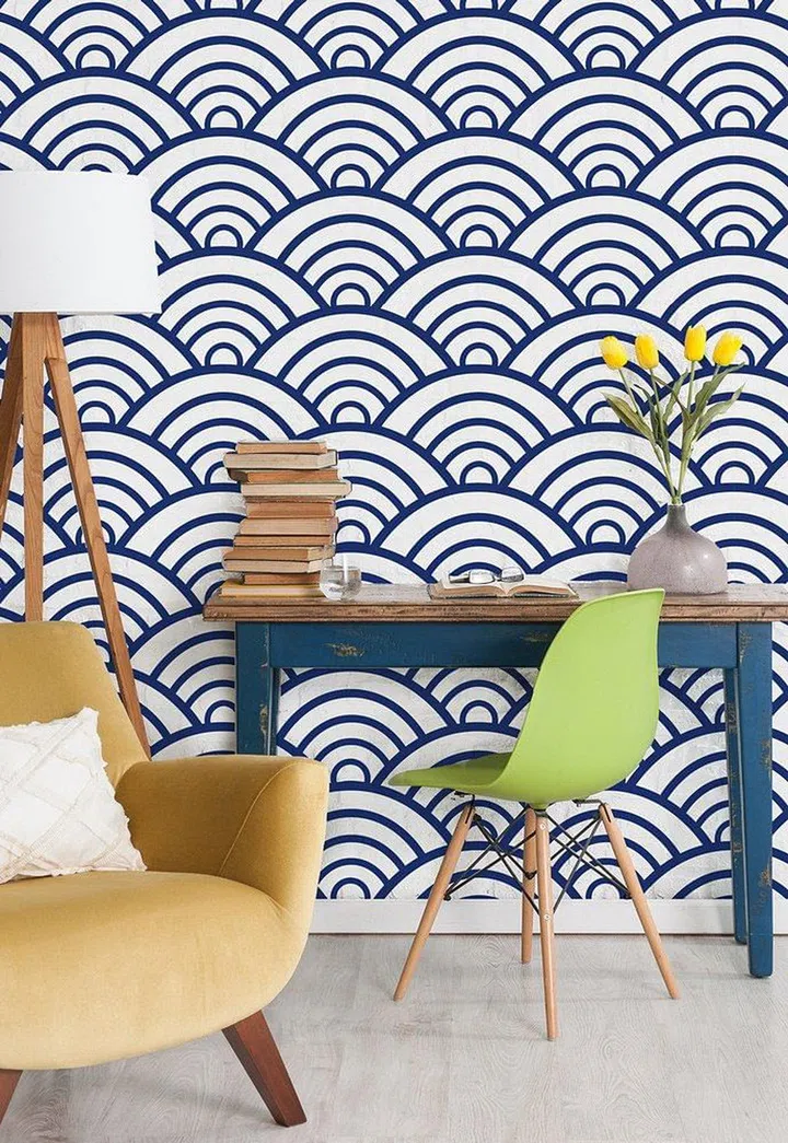 Retro wallpaper scale prints provide an Oriental touch, as can be seen in this design from Livettes. However, make sure to select the right thickness for the scale prints so it doesn’t overwhelm the space.