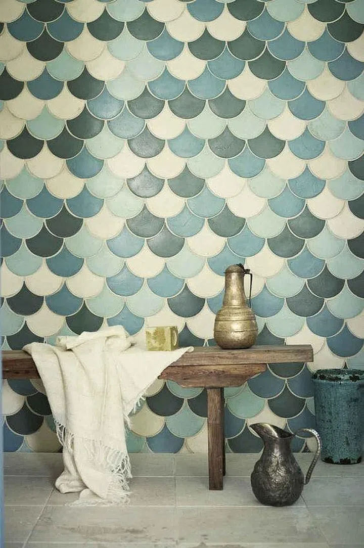 Scale-shaped tiles, such as these from Firedearth, are easily available and when used correctly help to create the impression of a larger space.