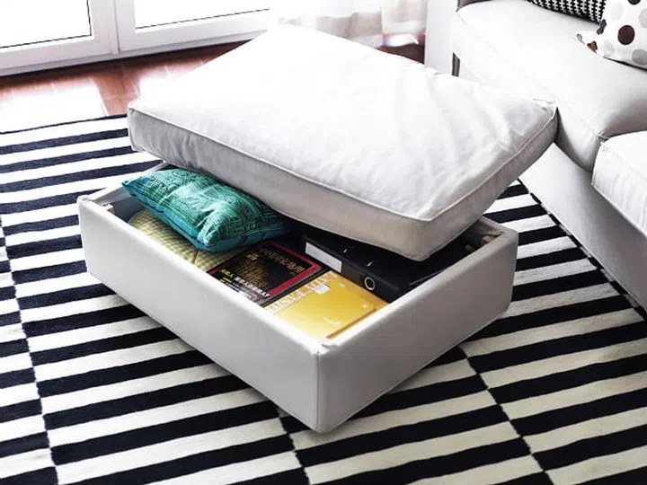 CLEVER STORAGE IDEAS: Get handy multi-functional ottomans. Your belongings will be within easy reach, while staying out of sight.
