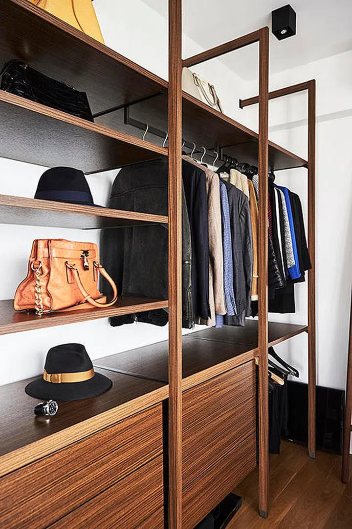 DOWNSIZE: Maximise wardrobe space by using thin hangers for shirts and light jackets, and folding T-shirts, to save space. Use thicker hangers to retain the shape of your blazers.
