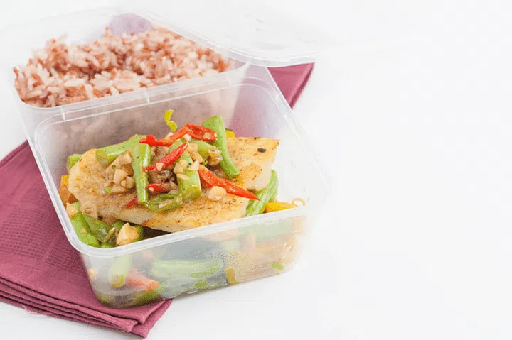 Packaging Disposable microwave containers for the dishes; styrofoam boxes for the rice.