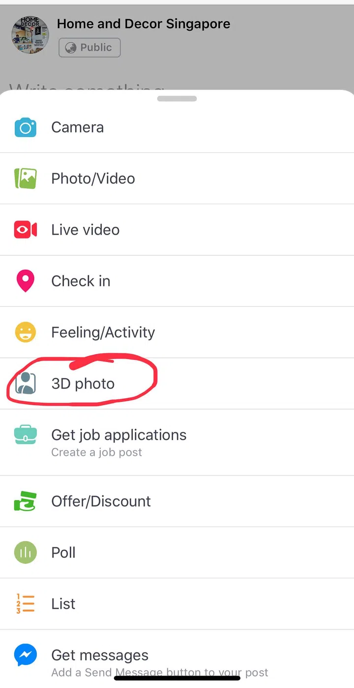 - When you look at the various things you can do with the new post, you will see a new feature that says 3D photo.