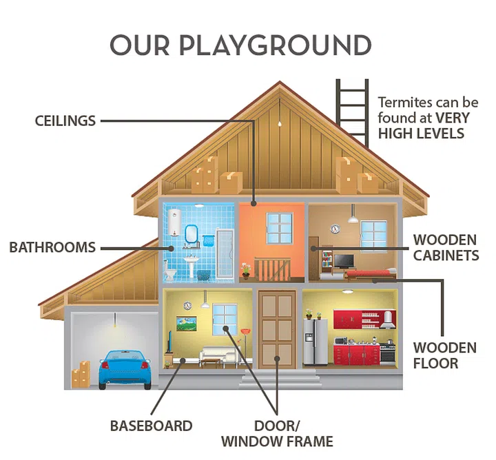 Drywood termites are spotted through the presence of faecal pellets which variy from pale white to dark brown to black (depending on the type of wood infested) as well as the clean and smooth internal chambers inside the consumed timber, which has been described as wood which has been smoothen by sandpaper.