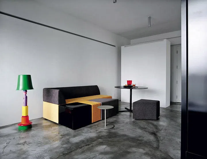 Don’t let a monochrome palette go flat! Just add a centerpiece sofa that has both interesting colour and texture to add more vivacity to the interiors.