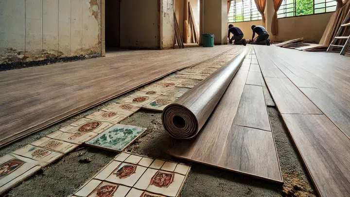 In areas with high moisture levels, such as bathrooms or ground-level floors, it’s advisable to use a moisture barrier to prevent potential issues. Additionally, adding a layer of vinyl over tiles will raise the floor height slightly, which may require adjustments to doors and thresholds. Proper transition strips should be used where the new vinyl flooring meets other flooring types to ensure a smooth and safe transition.