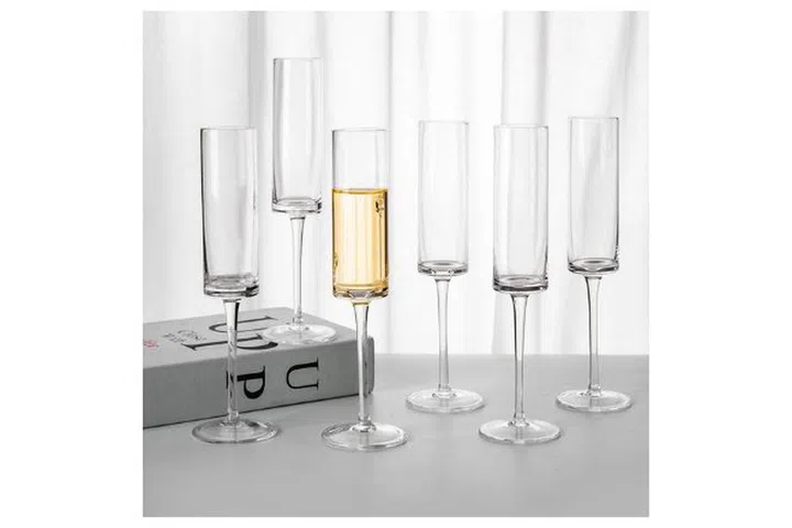 Champagne flute glasses are tall, narrow glasses specifically designed for serving champagne and other sparkling wines. Their slim and elongated shape helps preserve the carbonation and bubbles in the champagne, enhancing the drinking experience by funneling the aroma towards the nose and concentrating the effervescence. This design minimises the surface area of the wine exposed to air, ensuring the bubbles last longer.
