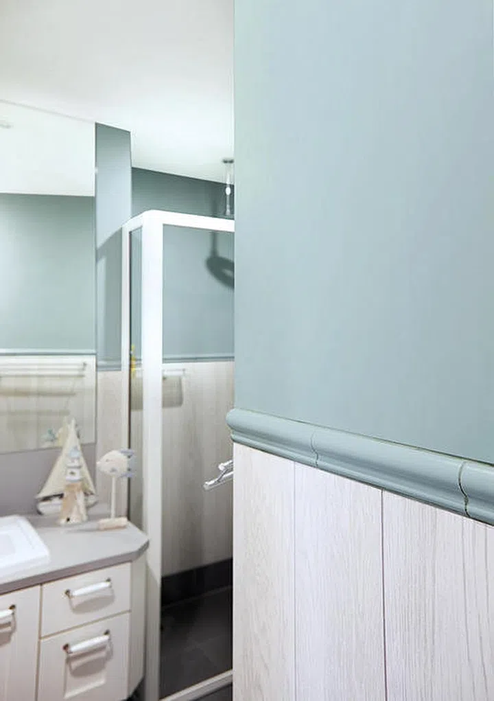 A must-have for the look. If there is one key item, this classic vertical strip paneling is it! It not only adds ornamentation that isn’t over-the-top to plain walls, but it has a fairly straightforward construction method. Paint it a delicate cream colour.