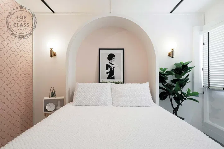 In the dining area, concrete alphabets, complete with a fake salad in a wooden bowl and serving utensils, spell “EAT”. Even the dining room oozes a cheerful vibe with a pendant lamp that allows the owners to add to their decor. And humorously emblazoned across her walk-in wardrobe doors is line art featuring the quote “Quit saying you have nothing to wear. Your wardrobe is full." The overall result is a home that exudes a carefree vibe and reflects the homeowners’ philosophy in life.