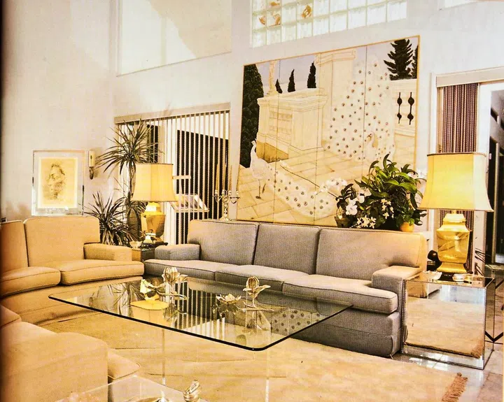 For designer Dolores Chollet, the challenge was two-fold: how best to keep the open, airy character of the contemporary California-style house with its soaring, A-frame roof, sunny atrium gardens, huge picture windows and glass block walls, yet make it more cosy – scaled for comfort, intimacy and efficiency, rather than architectural bravura.