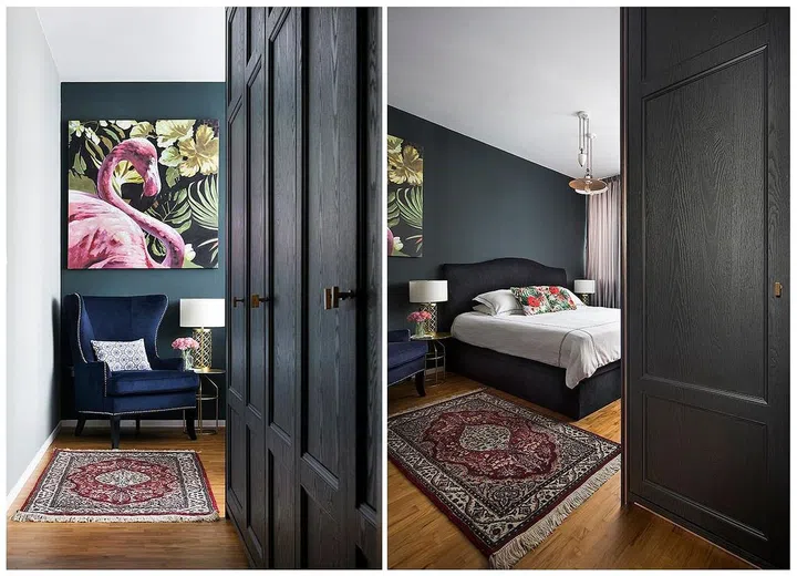 Printed area rugs in the bedrooms add warmth and give it an interesting mix of colour and patterns.
