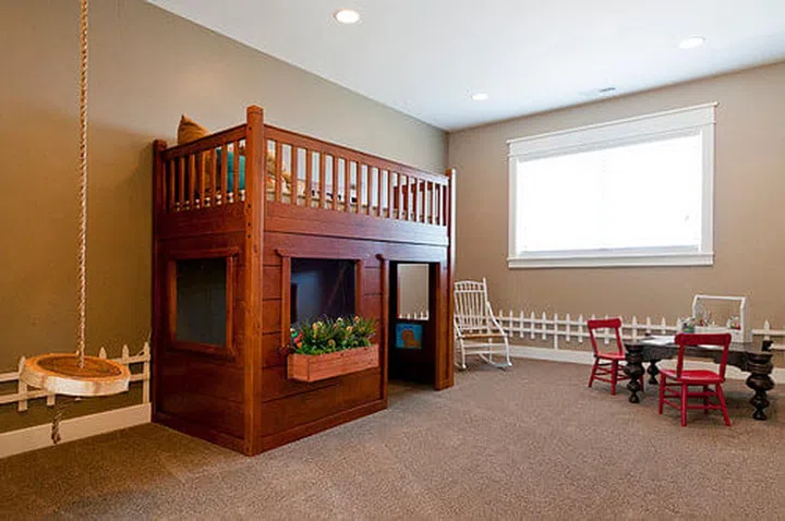 6. You can also turn the loft bed into a mini play house, and fill it with some fun kid-sized furniture. (Image: Houzz)