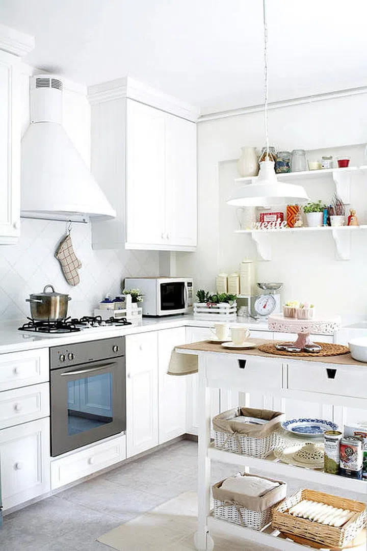 7. An all-white scheme helps this tiny kitchen appear larger.