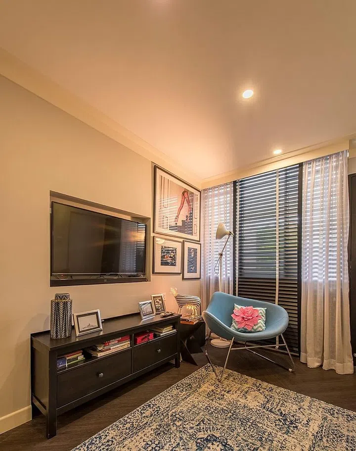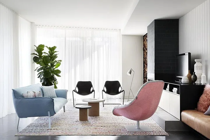 Add organic or circular shapes in the living room to break up the boxiness of rectangular sofas, windows and tv consoles.