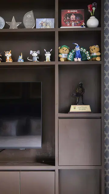 Interior designer nDon meticulously planned the shelves to accommodate Peranakan and Lego pieces of various shapes and sizes.