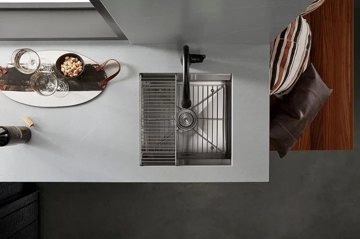 We see multiple sink stations as maintaining a demand, as it distributes overlapping tasks, diverts use traffic and in this case allows one to be primarily used for a beverage station, though it could double as supplemental prep or clean-up area.