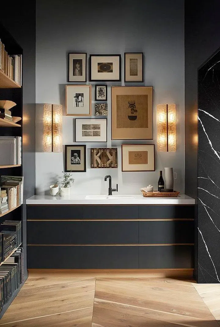 The kitchen features an archway, which Theresa cladded with Silestone's Marquina -- a black-hued stone that "adds a hit of graphicness to the archway between the two spaces, making the transition particularly engaging."