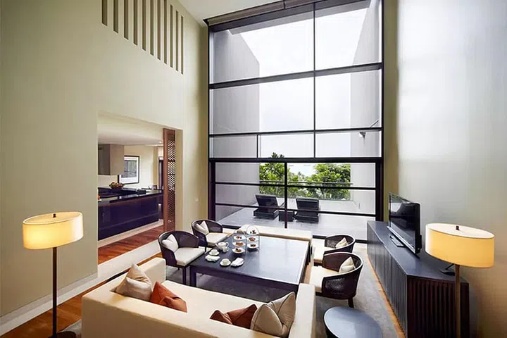 Unlike the bedroom suite, the penthouse (three bedrooms on the second floor) is a better option for those thinking of a family staycation, or just want more space for themselves. The high ceiling lends a luxurious and airy feel, and the stunning seaside view is the perfect break from the bustling city.