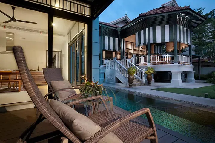 This one-of-a-kind 60s bungalow situated in a quaint and quiet neighbourhood to the east of Singapore channels an upscale “kampong” spirit with its modern amenities set against a rustic setting. With a total of five bedrooms, a private swimming pool and even a veranda for your daily morning coffee, it’s the perfect spot for a getaway.
