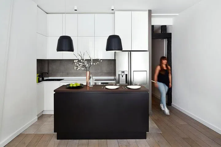 The interior design firm, Dsignedby, created an open-concept kitchen with an island. This means extra storage and countertop space, without the clutter of dining chairs.