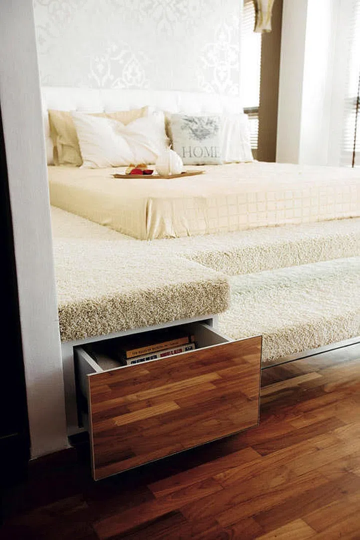 Platforms — good for zoning space, hidden underfoot storage that doesn't take up precious floor area and creating a relaxed atmosphere! They can be incorporated in both the public and private spaces of your home, as a raised seating area or a platform bed, as seen in these homes.