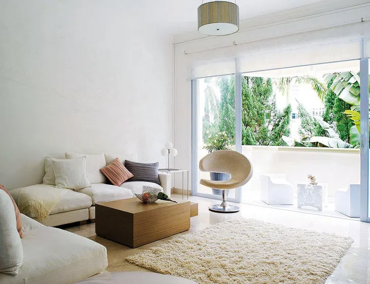 This four-bedroom condo apartment has interiors that are mostly white — from the largely white streamlined furniture to clean walls reflecting off the sunlight streaming in from full-height glass balcony doors.