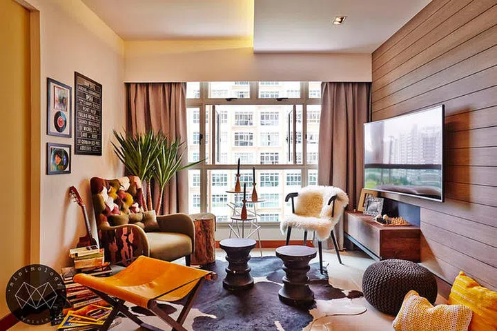 Despite the small space, the designers managed to fit various unique elements into this eclectic living room.