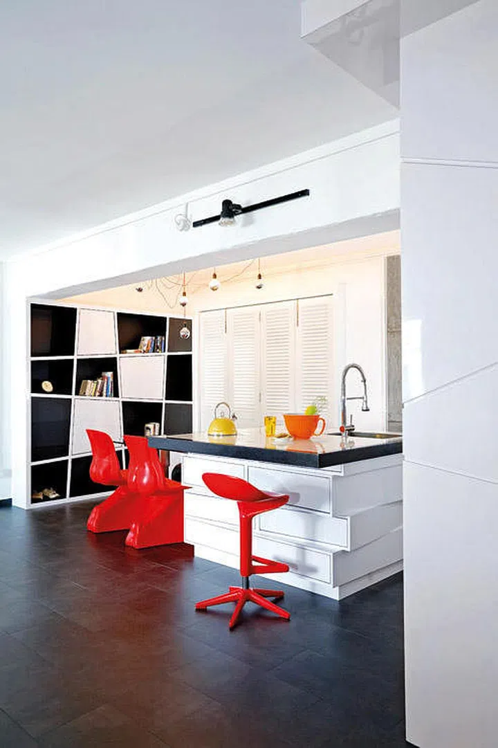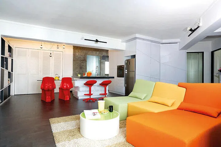 Space Sense helped these owners turn their flat into an open-concept space filled with bold, punchy colours.