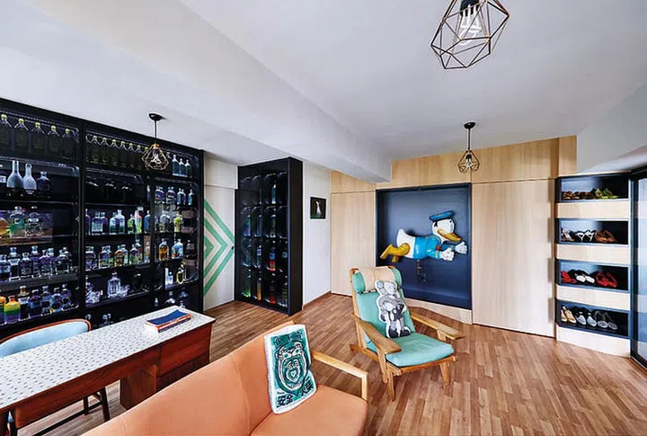 Cool feature: The large Donald Duck “sculpture” is actually the seat of an amusement park carousel ride that the couple acquired in Bangkok.