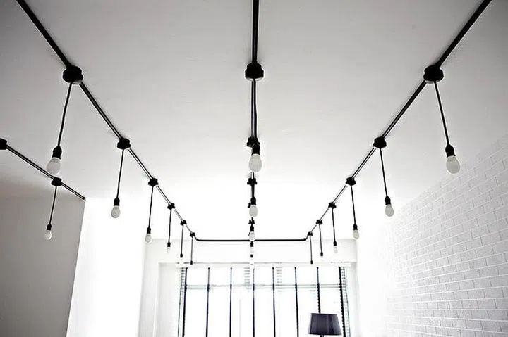 This designer made use of energy-saving bulbs that can be operated in groups of five to help adjust the illumination in the room. The bulbs appear to be floating, mystical lights because of the thin, almost invisible wires that support them.