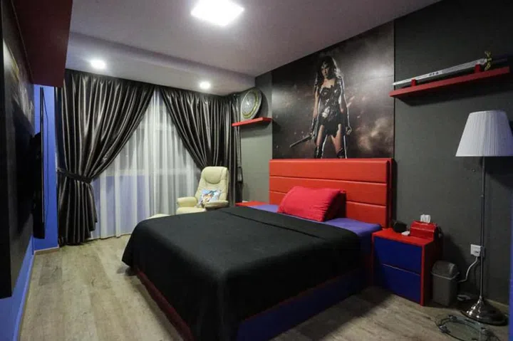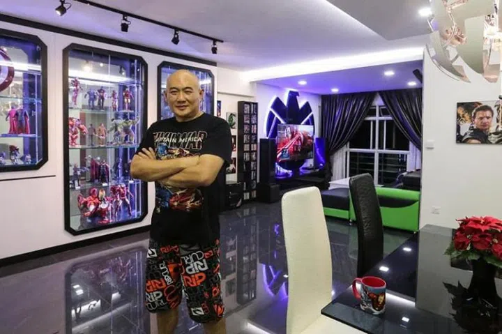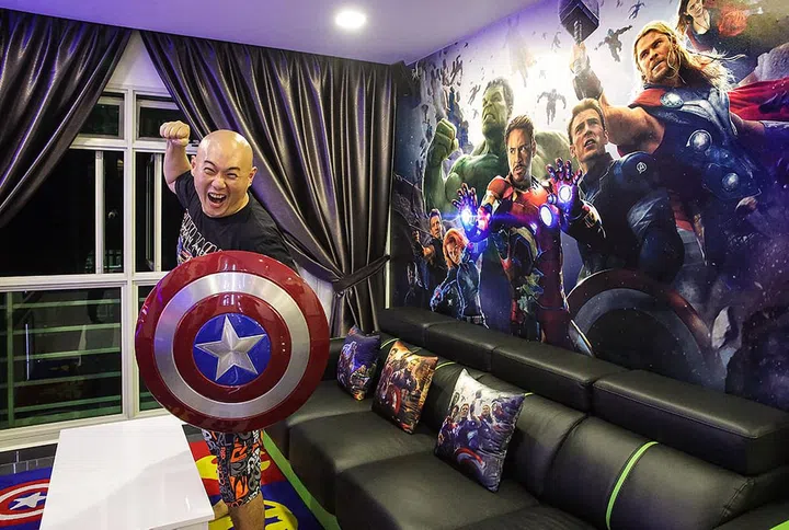 A superhero fan since he was 10, Mr Jason Koh, 41, spent $70,000 on the superhero-themed renovation for his five-room flat in Punggol. The flat features Marvel Comics and DC Comics superhero figurines, wallpapers and home décor items such as bedsheets, cushions, a carpet and a clock.