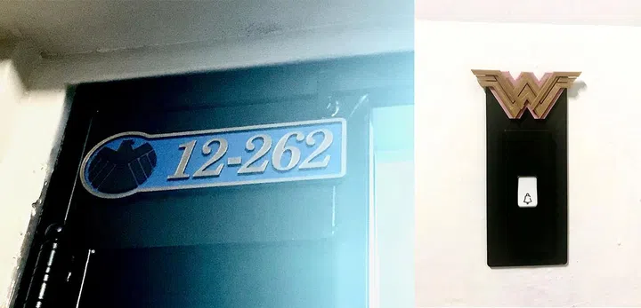 Mr Koh even used a 3D printer to print unit-number plaques with the S.H.I.E.L.D. logo and a doorbell switch featuring the Wonder Woman logo!