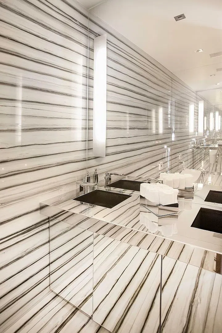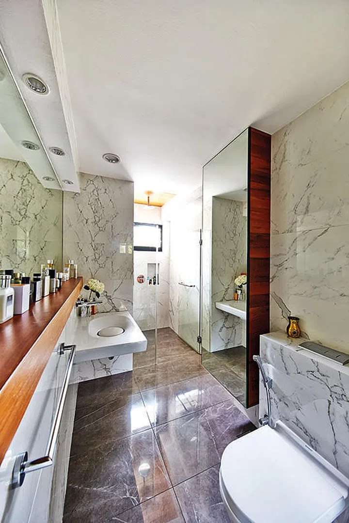 In this chic home, the designers combined two necessities: the mirror and a dining booth.