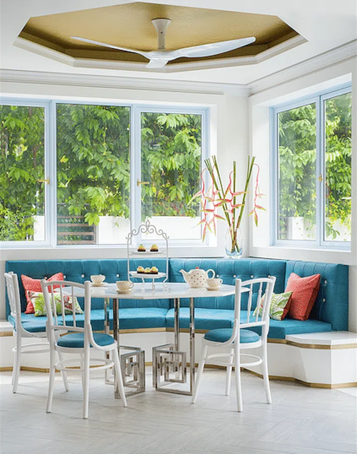 Design firm Design Intervention took home a prize in the "Kitchen Over £100,000" category for this show-stopping kitchen, which features a teal-blue leather banquette.