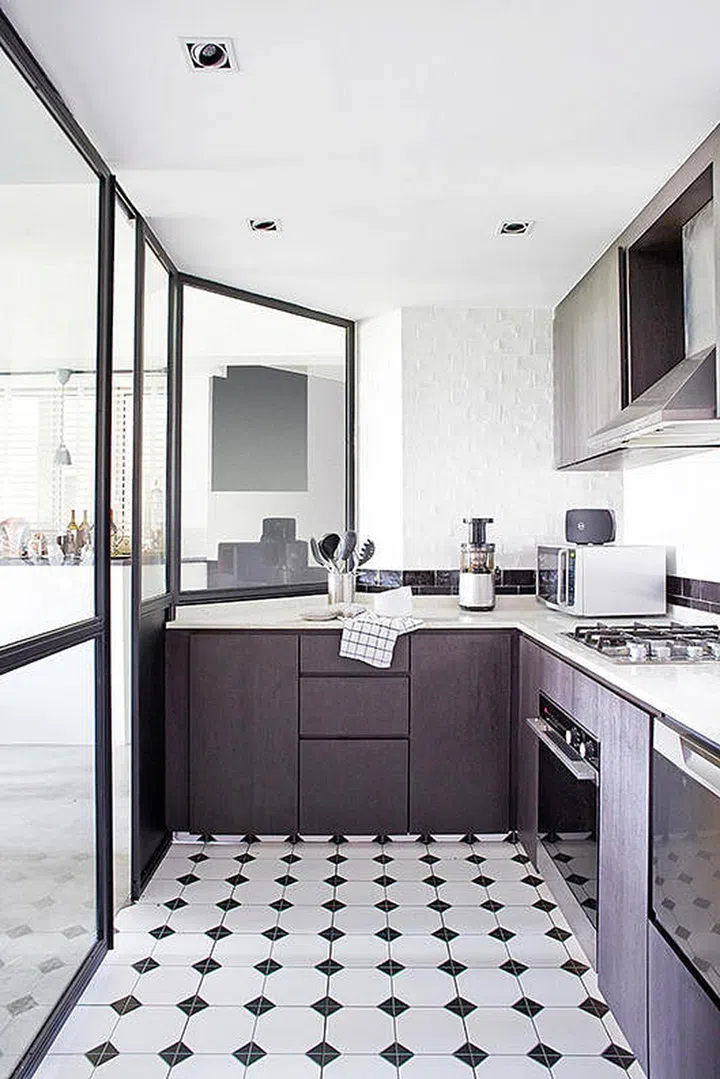 This classic black-and-white tile is ideal for homeowners who want a simple pattern that will not overwhelm the kitchen design.