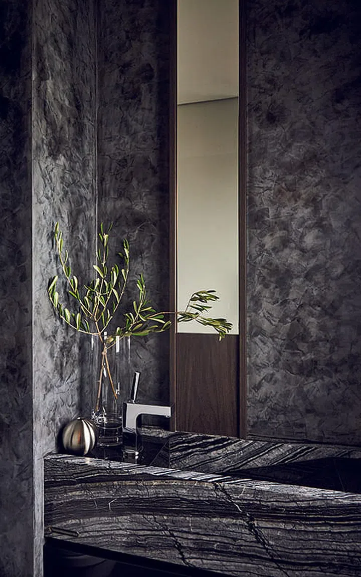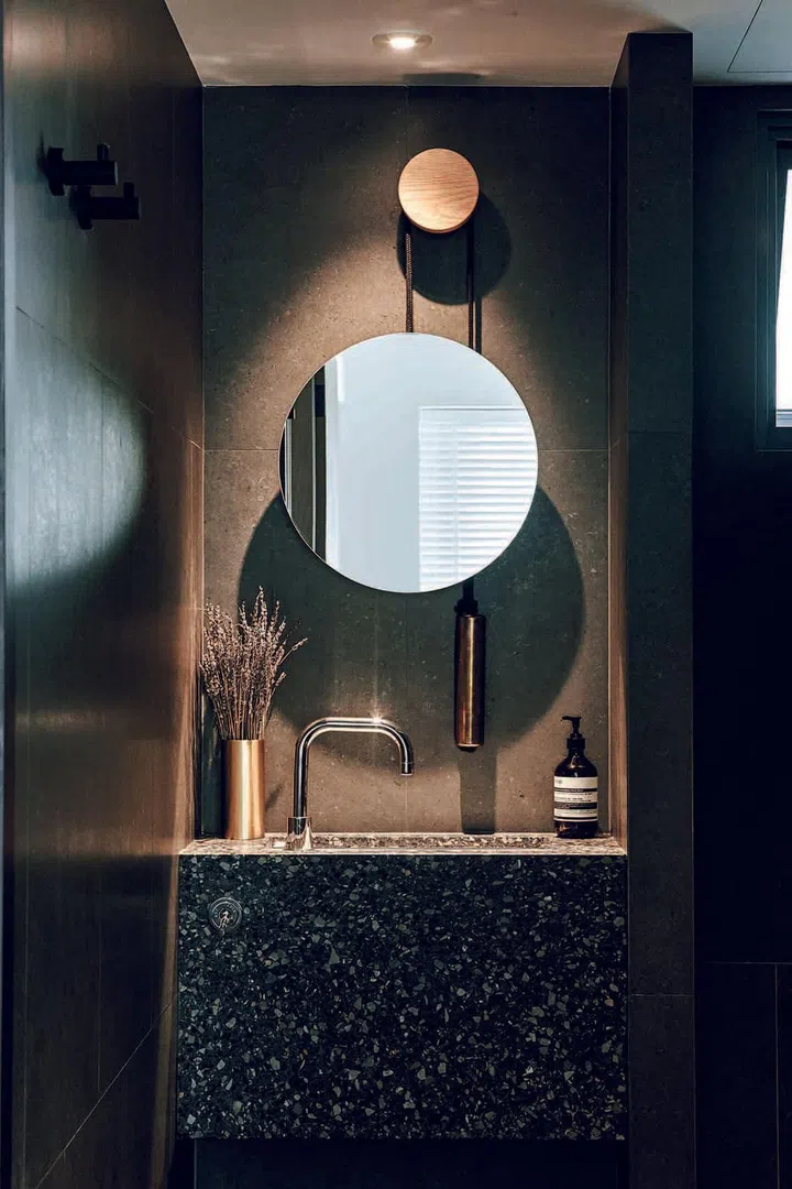 Give the mirrored-wall concept a twist by opting for a tinted mirror; this one adds warmth to the home's earthy colour scheme.