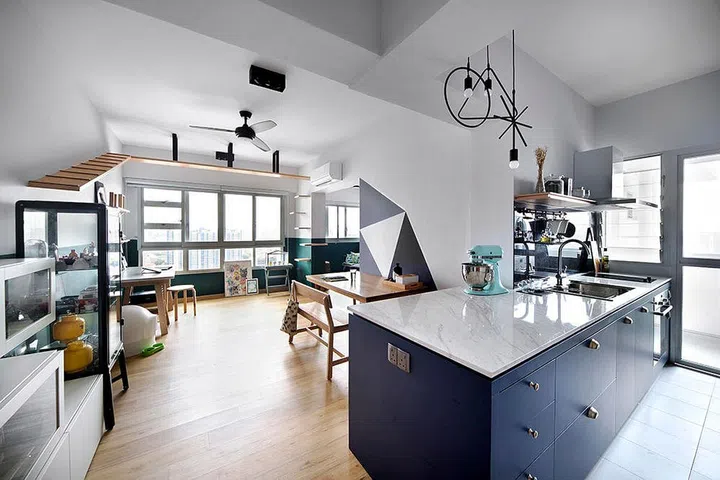 The use of two different tiles show how colour-zoning can be done in open-concept homes like this one.