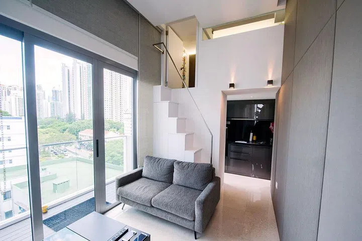 What this 840sqf apartment lacks in area, is made up for it in volume.