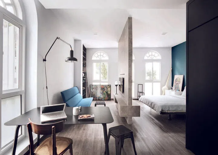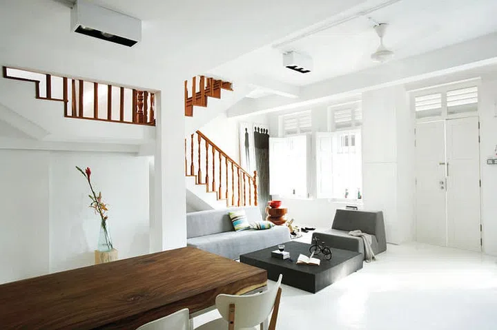 5) Urban-bohemian, loft-inspired style in this conservation shophouse