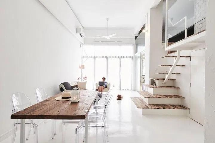 Having designed his client’s previous HDB home, Kelvin Teo of Space Sense Studio was in touch with homeowner Er Cheep Hong when she was eyeing a new condominium apartment. Cheep Hong consulted Kelvin before purchasing the unit, as she wanted to ensure that the design and structure could accommodate the aesthetic preferences she wanted for this new space. The interiors were previously dark, gloomy and cramped, but the unit’s particularly high ceiling gave rise to the idea of taking advantage of the vertical space available.