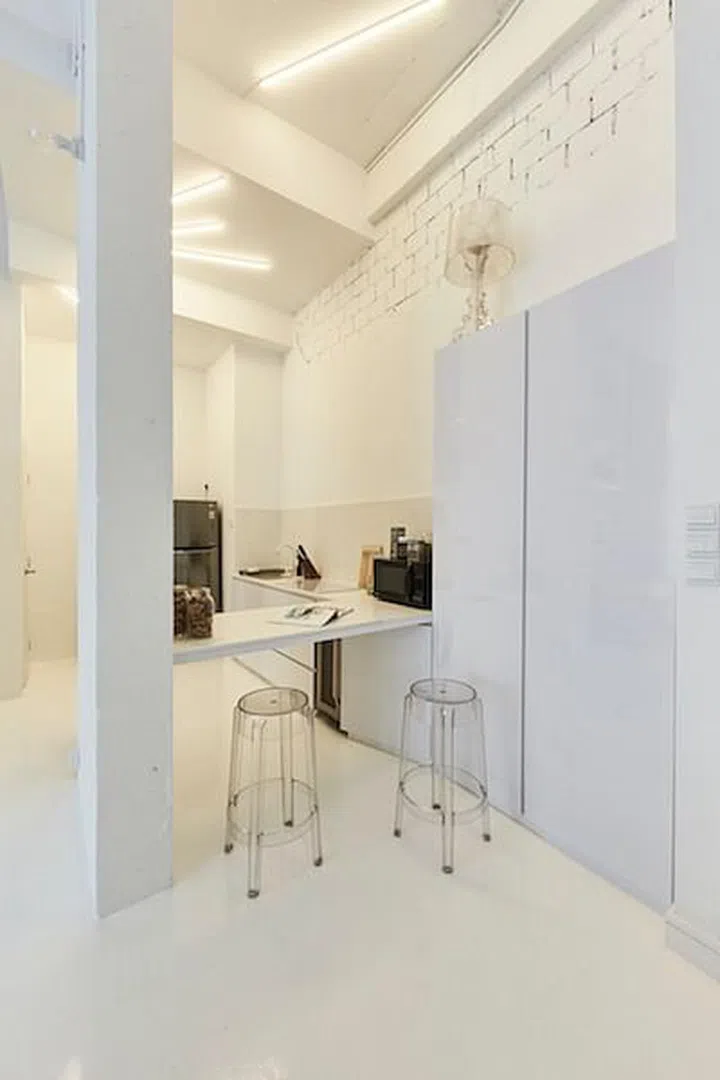 Kelvin decided to adopt an all-white palette to brighten up the look while modifying the layout significantly to maximise the use of the space. This resulted in walls being broken down to allow a reconfiguration of the bedrooms and bathrooms. What was formerly a one-bedroom apartment has now become a home with two bedrooms.