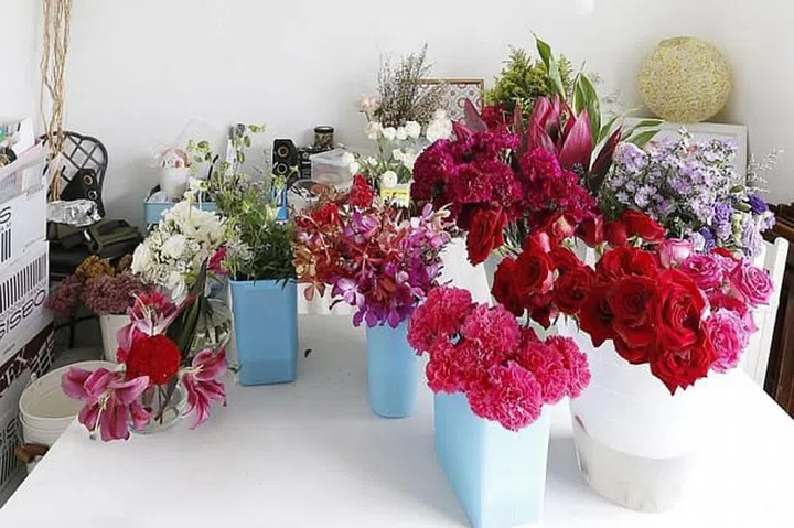 Of the three bedrooms upstairs, one is Ms Yeo's bedroom and the other is her office. Ms Yeo calls the third bedroom her floral room. Some days, buckets and buckets of exotic blooms, such as ornithogalum, ranunculus and hellebore fill the room. The room is kept air-conditioned when there are flowers in the room. Ms Yeo describes her style of floral arrangement as "lush and organic. And I like to use a large variety of flowers in each bouquet," she says. She also conducts floral arrangement workshops for eight to 10 people here.