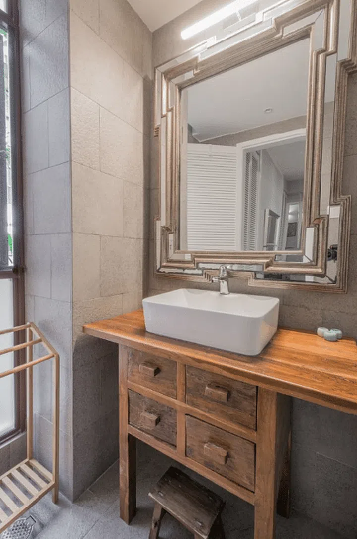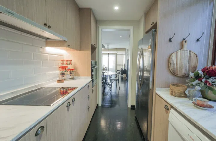 “This antique look was balanced out with a modern and minimalist kitchen, where we used an oak-finished laminate from EDL and an Alaska marble countertop,” says Alicia, who added that the $80,000 renovation cost includes the replacing of walls and doors, and carpentry work.