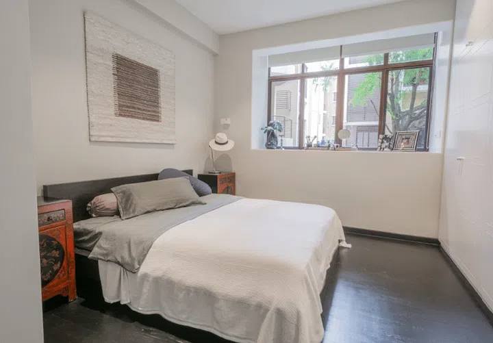 The parquet flooring was stained black, while the walls were painted a creamy shade of white – a combination that was easy to match with the array of eclectic furniture the family bought from Thailand.