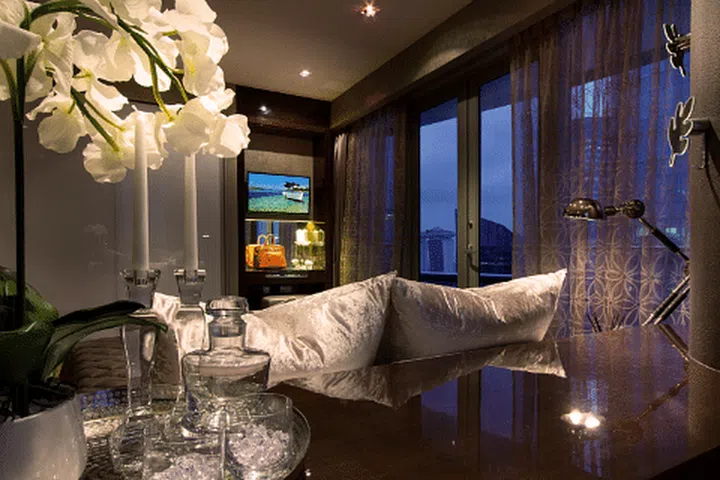 Nominated in the Living category of the awards is the living area of this four-bedroom project, also at One Shenton.