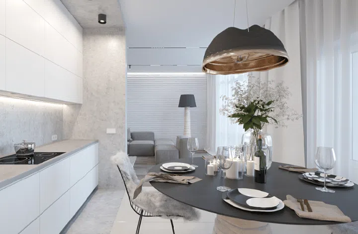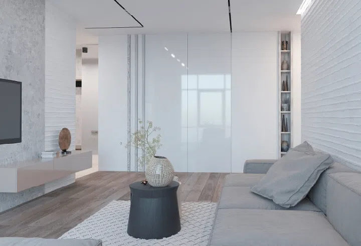 An all-white home can be cosy and warm, too, and this project by Ukranian interior designer Victoria Yakusha shows you how. Victoria says "creating a game of shades and shapes on different surfaces" to add some character to the space is an important part in achieving the look.