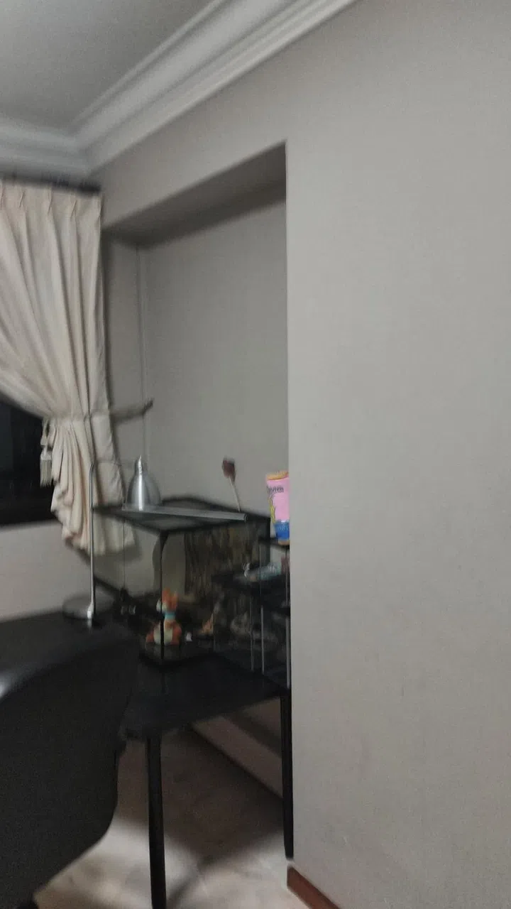 This is Coffee's little corner. I had raised Coffee ever since she was an egg, so naturally I love her the most. She has her own little corner on the desk beside me, right beside the pantry. I installed a piece of driftwood with a hole drilled out for her to hide in. She absolutely loves this log, and has never left it. She spends her days hiding in the hole, coming out only at night.