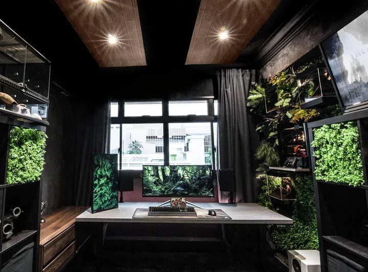 Kelvin Lee (KL) is not your average graphic designer and web developer. Aside from being nimble with his hands, he's also a passionate spider lover. Not one to keep them confined to tanks, Kelvin allows his spiders to free roam within his bedroom. The avid arachnid owner even created a make-believe company name for his bundle of joy, called Stacey's Web Development Company. But with a growing collection of cobwebs forming in various corners around the space, Kelvin decided to use the opportunity to transform his former bedroom into a cool den where he can hang out with his eight-legged pals while working or gaming from home.