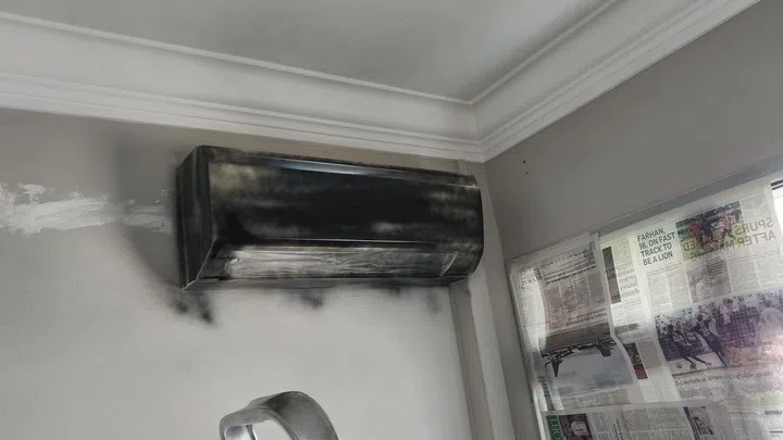 First thing to be blacked was the old and yellow aircon. I taped all the vents and just went mad with a spray can.