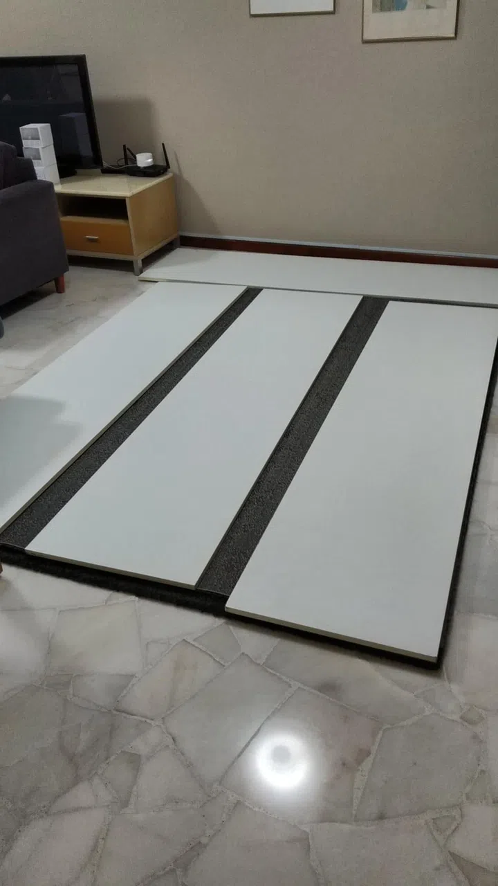 This was a fantastic deal I found on Carousell. A very nice lady was moving back to her home country, and wanted to sell her TV and TV console for $50. FIFTY DOLLARS. The console was bowing in the middle due to the TV's weight, so I removed the legs, and instead just mounted it onto my wall as a floating shelf. Unfortunately I can't use this shelf now, because Coffee has overtaken it.